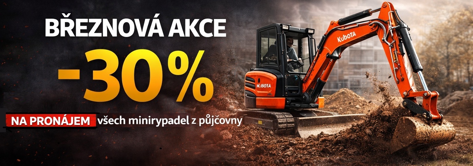 - ✅ Sleva –30 % se vztahuje na pronájem všech minirypadel z půjčovny