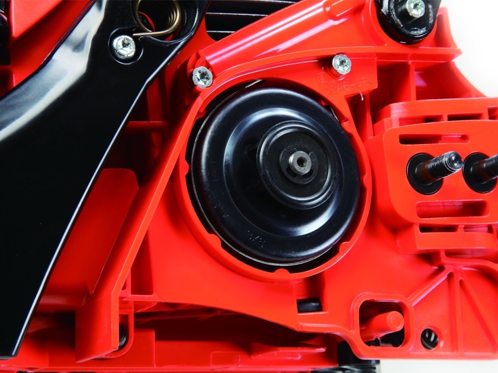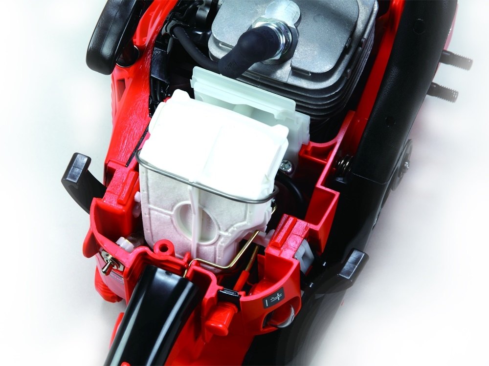 Automatické mazání oleje v závislosti na otáčkách řetězu zabraňuje samovolnému vytékání a snižuje tak jeho spotřebu a chrání skladovací prostor proti znečištění. Není nutné jej vždy po použití pily vylévat Regulovatelný karburátor, který bývá opět výsadou pil vyšších řad umožňuje seřízení otáček motoru pro optimální výkon v závislosti na klimatických podmínkách a potřebách obsluhy. Velkoplošný prostorový filtr, snadno dostupný bez nutnosti použití nářadí, průběžně čištěný systémem G-FORCE zajišťuje v porovnání s běžnými jednovrstvými filtry dlouhé servisní intervaly a extrémně dlouhou životnost. Mezi další prvky výbavy patří mimo jiné přepážka pro zimní provoz umožňující předehřívání karburátoru a tudíž optimální výkon v zimních teplotách. A zároveň v letních měsících chrání pilu proti přehřátí. C.D.I. zapalování zaručuje spolehlivý start a chod za všech klimatických podmínek