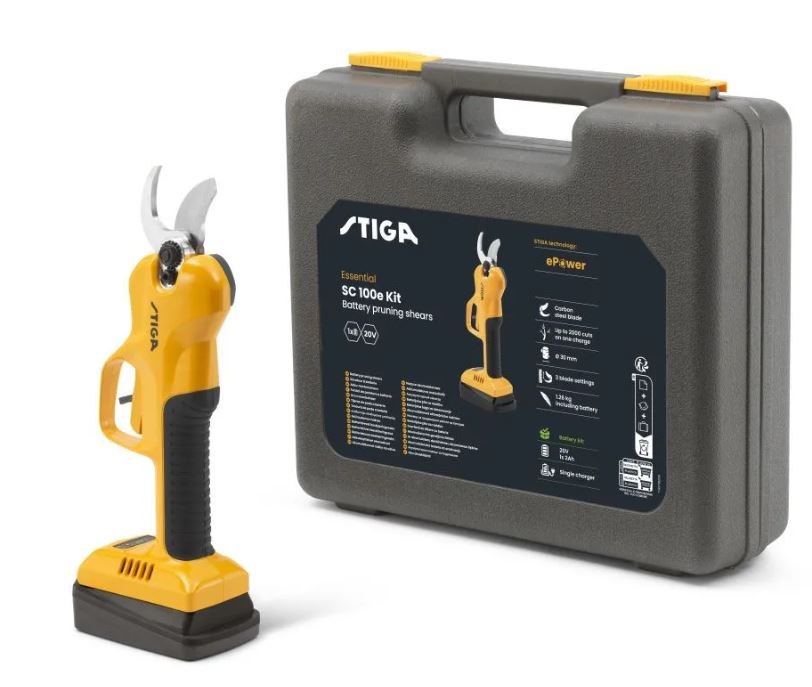 Bezpečné, výkonné, přesné a lehké zahradní nůžky STIGA SC 100e Kit dosahují průměru střihu až 30 mm. Jeho 500W bezkartáčový motor je poháněn baterií STIGA 20V ePower a umožní vám snadno prořezávat keře, živé ploty a malé ovocné stromy.