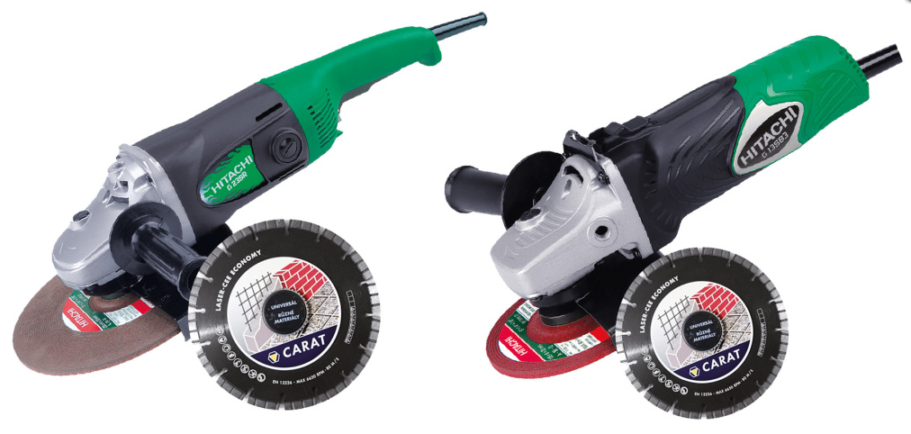 Úhlová bruska HITACHI G23SR 2.000 W; 230 mm, počet otáček 6.600min. Úhlová bruska HITACHI G13SB3 1.300 W; 125 mm, počet otáček 11000min .