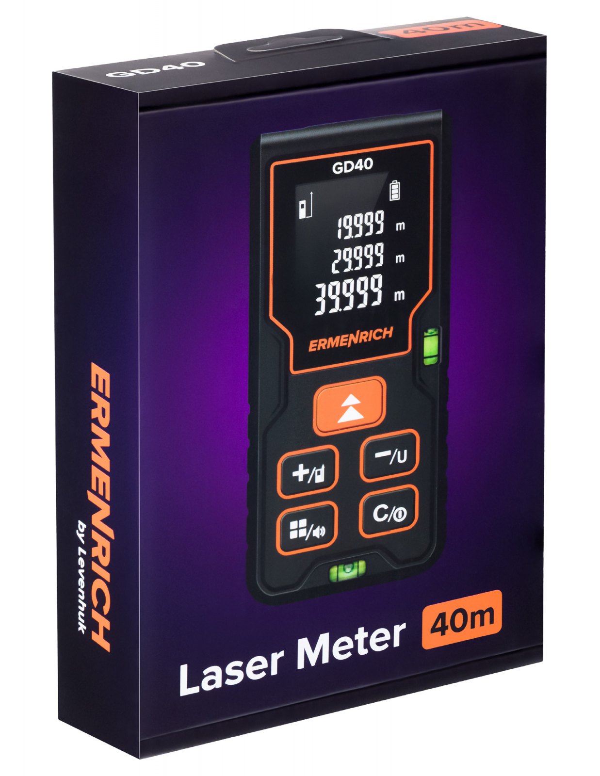Laserový měřič Ermenrich Reel GD40 je určen pro různá měření v malých a středně velkých místnostech. Tento všestranný přístroj lze použít ve stavebnictví, při renovacích a výzdobě interiérů, ve výrobě, při montážních pracích a v mnoha dalších oblastech použití. Maximální délka, kterou tento laserový měřič dokáže změřit, je 40 metrů. Kromě měření jednotlivých vzdáleností můžete tento přístroj použít k měření plochy a objemu v režimu kontinuálního měření.