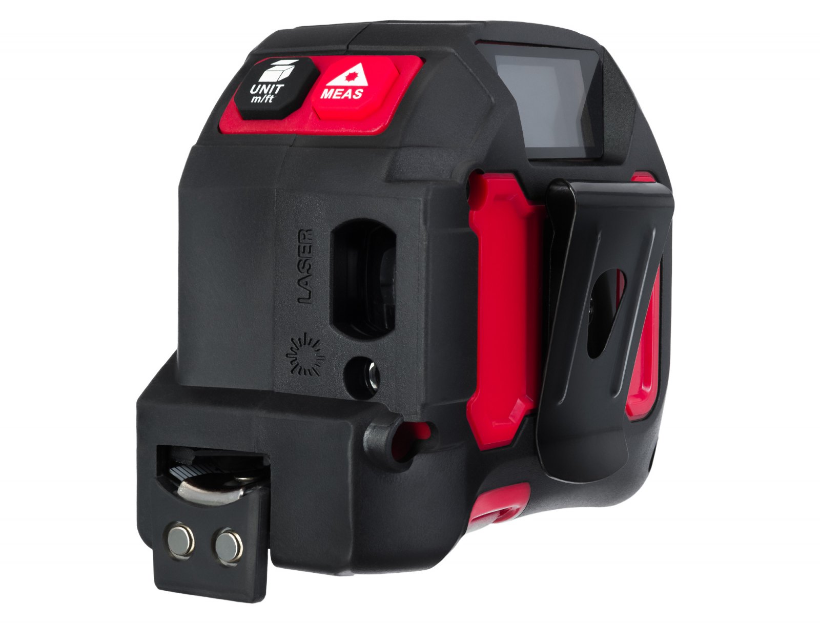 Rozsah měření laseru je 40 metrů a lze jej použít pro nejrůznější aplikace v městských bytech i venkovských domech. Pokud jde o samotný svinovací metr, má stupnici na jedné straně pásky, je 5 metrů dlouhý a je vybaven magnetickým háčkem. Samozamykací (aretační) mechanismus umožňuje rychlé a snadné použití tohoto měřicího nástroje. Kompaktní pouzdro laserového svinovacího metru Ermenrich Reel SLR545 PRO je vyrobeno z vysoce odolného ABS plastu a má pogumovaný povrch. Spona na opasek umožňuje snadné přichycení laserového měřiče k vašemu oděvu a používat jej bez použití rukou.