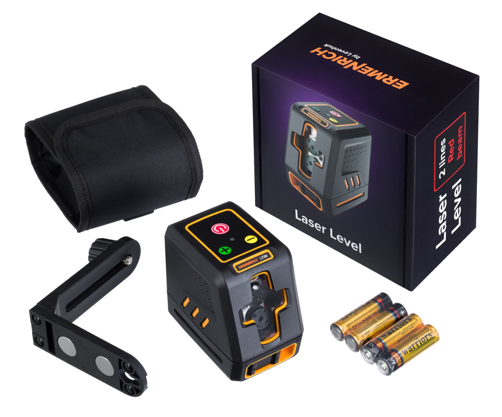 Seznamte se s laserovým nivelačním přístrojem Ermenrich LT20 – univerzální nástroj pro stavební, renovační a dokončovací práce. Je vybaven červenými laserovými LED diodami, které generují dvě křížové čáry. Vodováha může být až 15 m od povrchu, na který jsou promítány laserové paprsky. Horizontální a vertikální rozptyl – 130°. Kompenzátor vyrovná linie laserového paprsku. Vzhledem k nízké chybě měření vám pomůže co nejpřesněji vyznačit prostor.