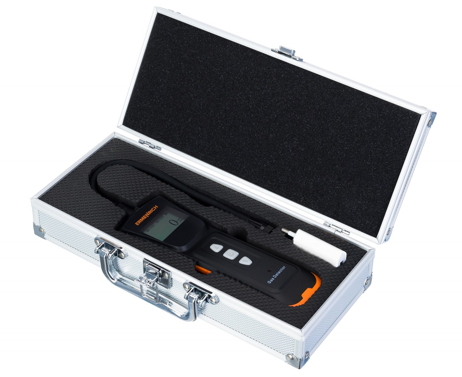 Detektor plynu Ermenrich NG40 s flexibilní sondou je detektor plynu, který dokáže rychle odhalit únik hořlavého plynu i v těžko přístupných místech. Spolehlivý detektor s vysoce citlivým senzorem a možností nastavení individuálních hodnot alarmu. Přístroj je užitečný v domácnosti s plynovými spotřebiči, v průmyslovém prostředí i na čerpací stanici. Umožňuje rychlou identifikaci zdroje nebezpečí a přijetí opatření k řešení úniku plynu.
