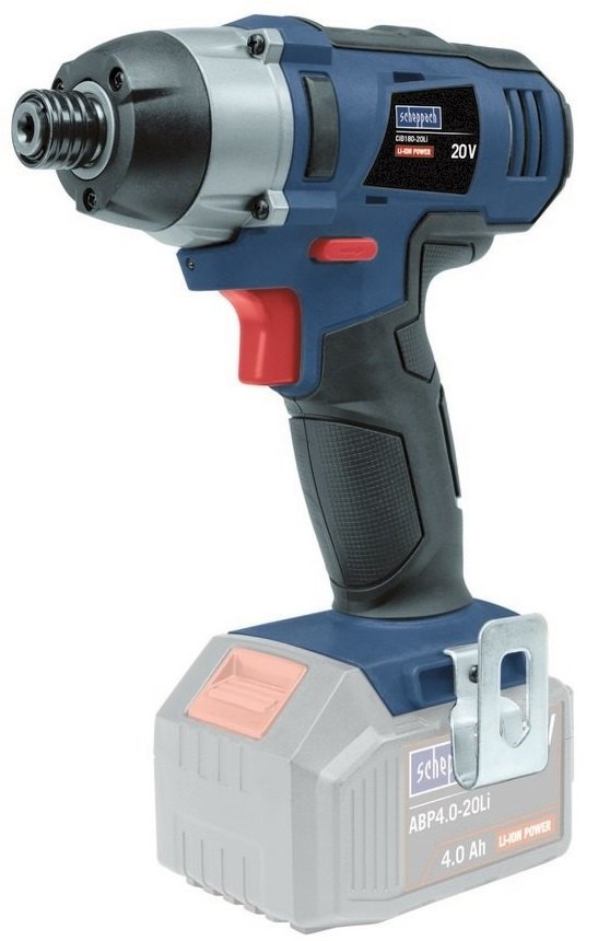 Díky absenci zpětného rázu (běžné u vrtaček) nezatěžuje zápěstí a práce je tak velmi pohodlná. Stroj je vybavený LED osvětlením pracovního prostoru, ergonomickou rukojetí s protiskluzovými zónami, rychloupínacím sklíčidlem 1/4", elektronickou regulací rychlosti, levým a pravým chodem, odnímatelným ocelovým klipem na opasek a celokovovou převodovkou. Stroj lze používat s bateriemi Scheppach 1,5/2/4 Ah. Stroj se dodává bez baterie a nabíječky.