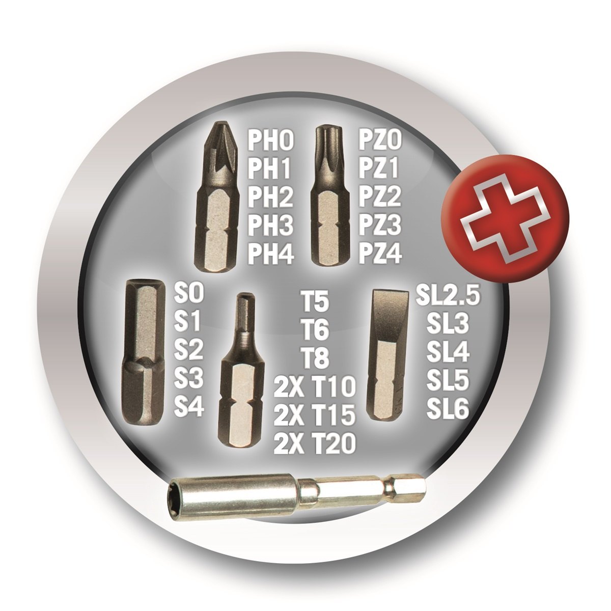 Výměna nástrojů je rychlá díky modernímu rychloupínacímu sklíčidlu. Stupně utahovacího momentu se dají nastavit v šesti stupních, takže máte vždy ideální nastavení podle druhu materiálu, se kterým pracujete. Samozřejmostí je možnost přepnutí na pravý a levý směr otáčení. O pohon se stará kvalitní akumulátor 4V. Indikace stavu jeho nabití je na vrchní části stroje. Stroj se dodává včetně sady 30 bitů.