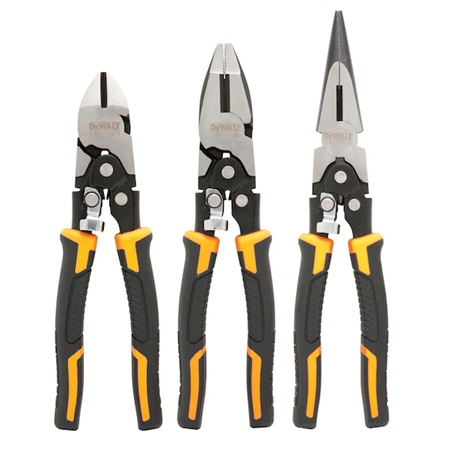 Sada 3 kusů kleští DEWALT® s kombinovaným mechanismem má indukčně kalené řezné čepele pro větší pevnost a odolnost.
