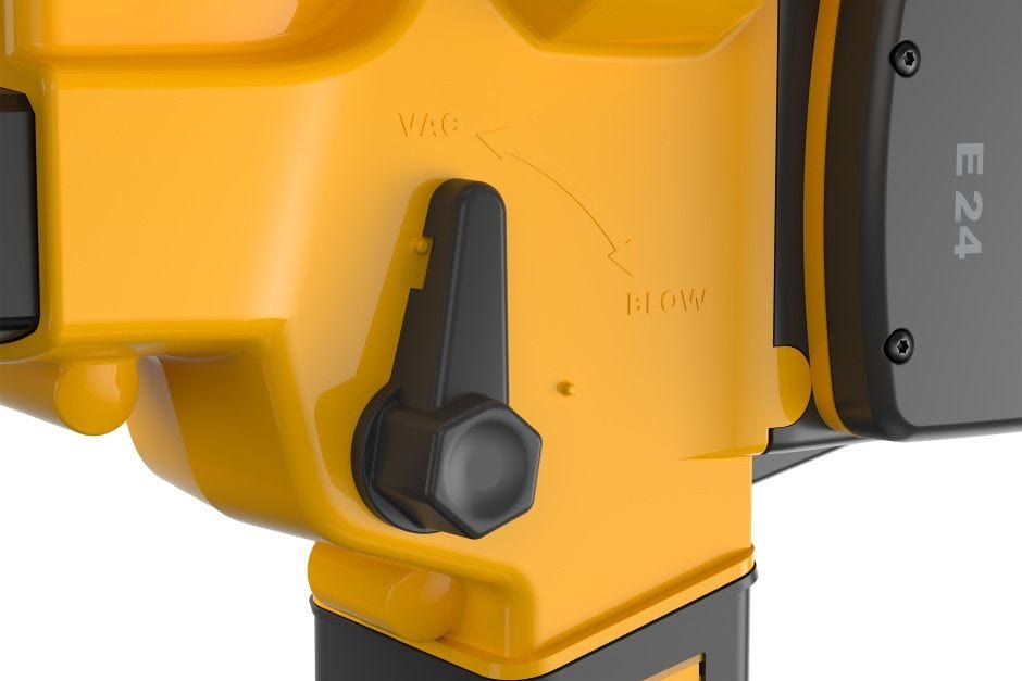 Jednoduše otočte páčkou – listí buď odfouknete, nebo vysajete nečistoty do drtič, který listí automaticky nadrtí na mulč.
