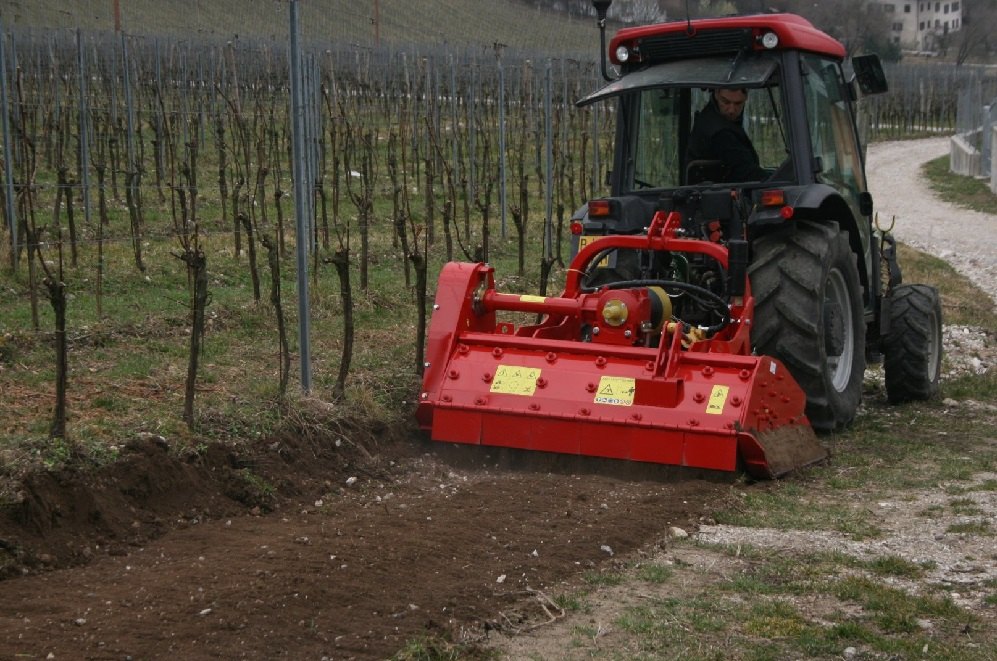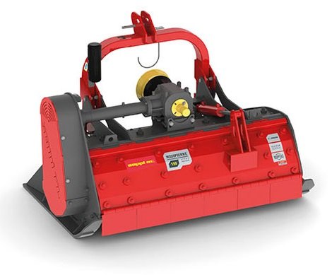 Drtič kamene SEPPI MIDIPERRE pro traktory s výkonem 80 - 130 HP, drtí kameny do průměru 20 cm, pracuje do hloubky 12 cm, pracovní rychlost 0 - 2 km/h, pracovní šířka 125, 150 cm.