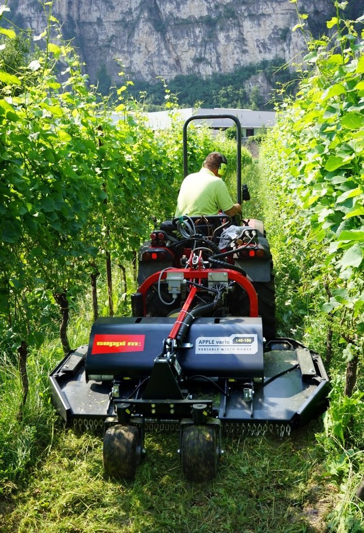 APPLE vario je odolná rotační sekačka SEPPI s variabilní pracovní šířkou. To je užitečné zejména tam, kde jsou řádky nepravidelné. Nastavitelná výška sečení a aerodynamicky tvarované horizontálně otočné nože zajišťují perfektní výsledek práce. Nože se překrývají pro pravidelný řez i při změně pracovní šířky. Při změně pracovního záběru se opěrná kola z pryže nebo kovu automaticky nastaví a dokonale se přizpůsobí šířce kol traktoru. Plášť SEPPI APPLE vario je velmi odolný, vyrobený z vysokopevnostní oceli.