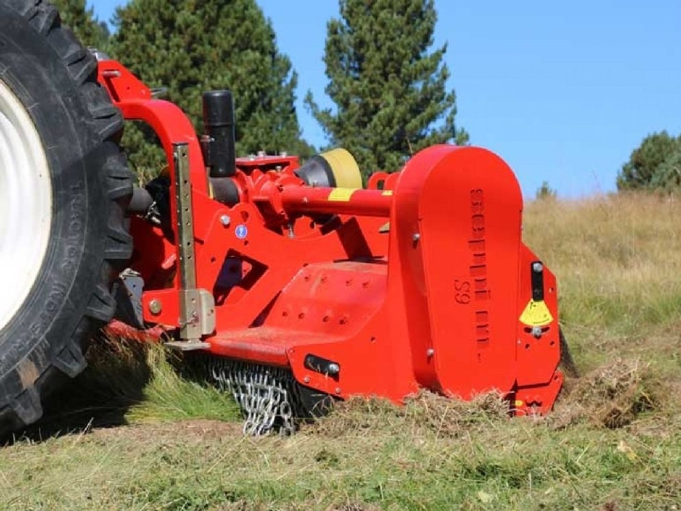 Těžký reverzibilní mulčovač SEPPI S9 base pro traktory s výkonem 100 - 180 HP. Mulčuje trávu a keře do průměru 9 cm, dostupná pracovní šířka 200, 225, 250, 275, 300 cm.