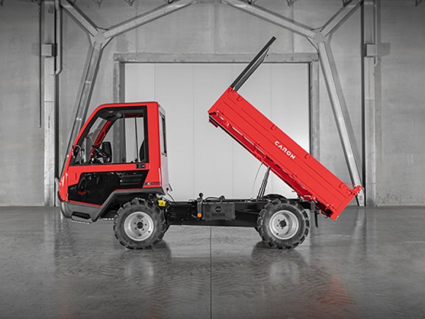 Caron řady C s třícestnou hydraulicky sklápěcí korbou a zadním 2-rychlostním (540-1000 ot./min) standardním vývodovým hřídelem. Je k dispozici ve dvou různých rozvorech a velikostech platformy: rozvor 2220 mm s korbou 2560x1640x400 mm nebo rozvor 2380 mm s korbou 2760x1640x400 mm.