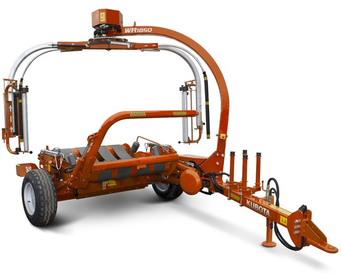 Baličky kulatých balíků Kubota nabízí varianty: nesená balička WR1100 a tažená WR1400, WR1600 s rotačním stolem, WR1250 nesená se satelitním ramenem a WR1850 tažená se satelitními rameny.