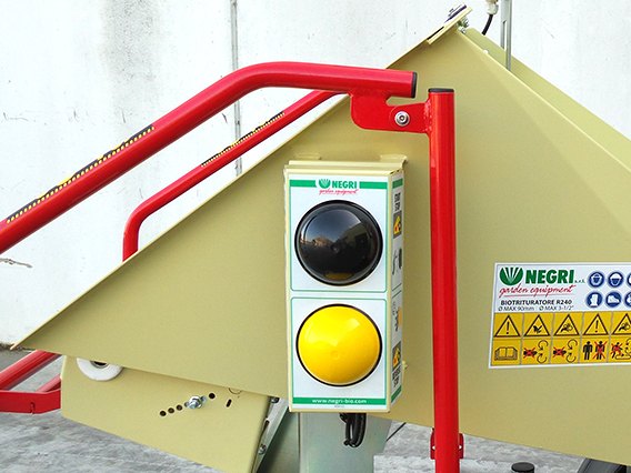 Důležitým bezpečnostním prvkem stroje je pákový systém, který automaticky zastaví podávací válce v případě zachycení obsluhy nebo vniknutí nežádoucího předmětu do násypky. Téměř všechny drtiče jsou osazeny hydraulickými podávacími válci s proměnnou rychlostí podávání a možností zpětného chodu. Vyváženým těžištěm drtiče je zabezpečena dokonalá stabilita při práci i manipulaci se strojem. Dalším podstatným prvkem drtičů Negri bio je výška výhozového komínku, kterou lze prodloužit. Snadný a rychlý přístup k drtícímu ústrojí zajišťuje bezproblémové čištění a údržbu stroje. Ocelové díly jsou opatřeny kvalitní práškovou povrchovou úpravou nebo galvanicky pozinkované.