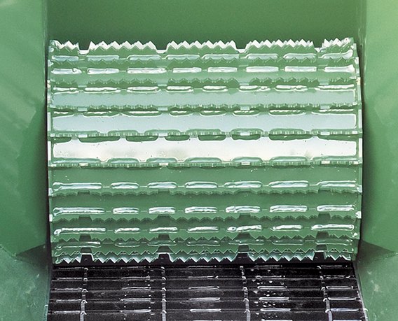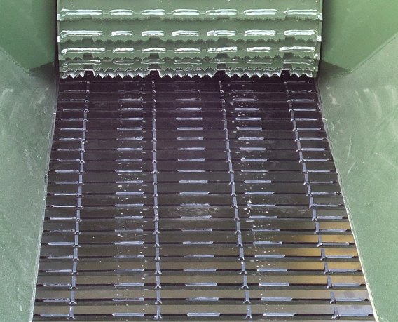 Důležitým bezpečnostním prvkem stroje je pákový systém, který automaticky zastaví podávací válce v případě zachycení obsluhy nebo vniknutí nežádoucího předmětu do násypky. Téměř všechny drtiče jsou osazeny hydraulickými podávacími válci s proměnnou rychlostí podávání a možností zpětného chodu. Vyváženým těžištěm drtiče je zabezpečena dokonalá stabilita při práci i manipulaci se strojem. Dalším podstatným prvkem drtičů Negri bio je výška výhozového komínku, kterou lze prodloužit. Snadný a rychlý přístup k drtícímu ústrojí zajišťuje bezproblémové čištění a údržbu stroje. Ocelové díly jsou opatřeny kvalitní práškovou povrchovou úpravou nebo galvanicky pozinkované.