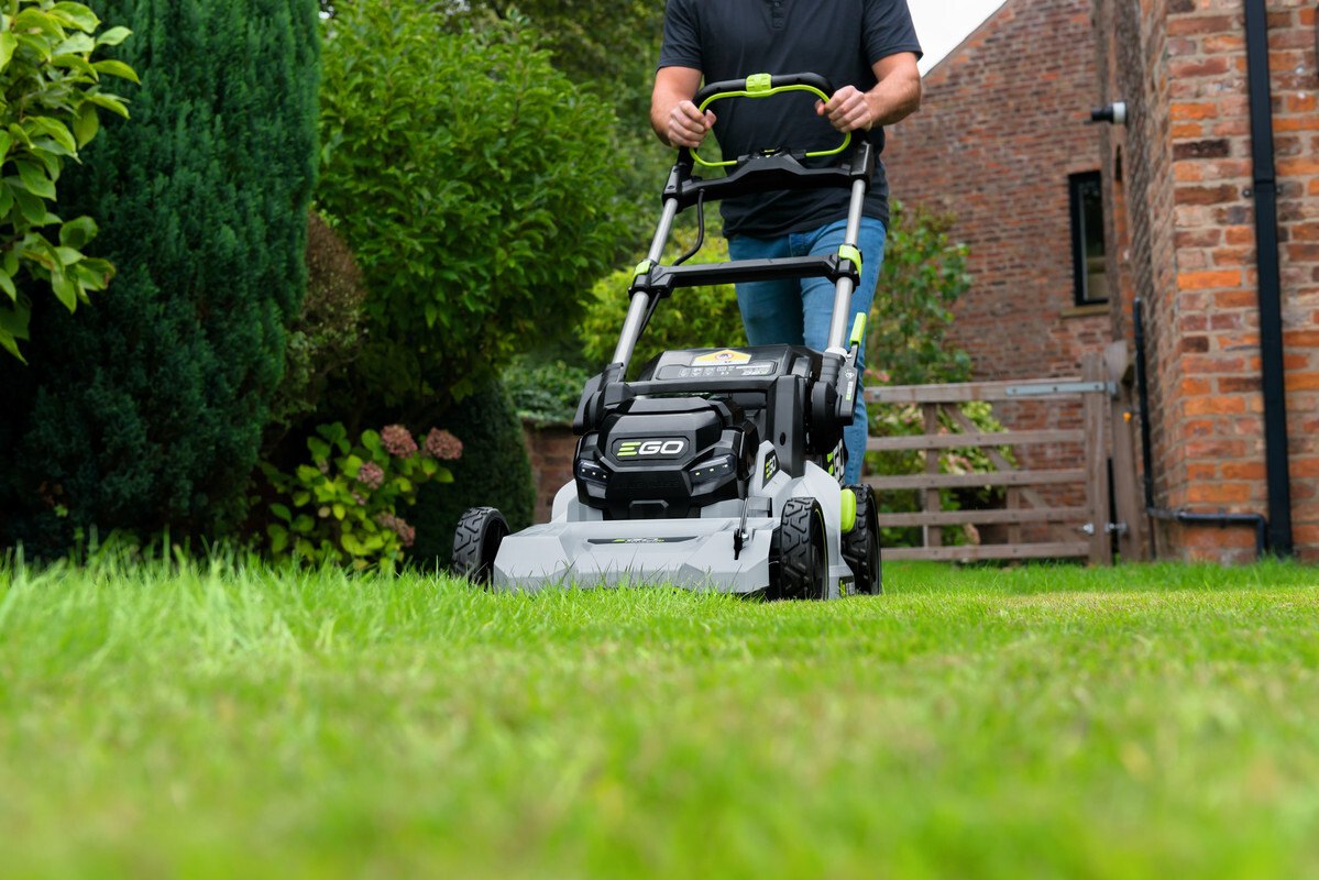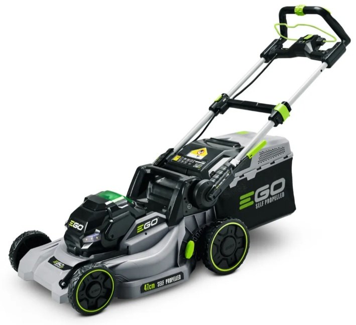 Model EGO LM 1900E-SP - záběr sečení 47cm a plynule proměnlivý pojezd, objem sběrného koše 55L, teleskopická a výškově nastavitelná komfortní rukojeť.