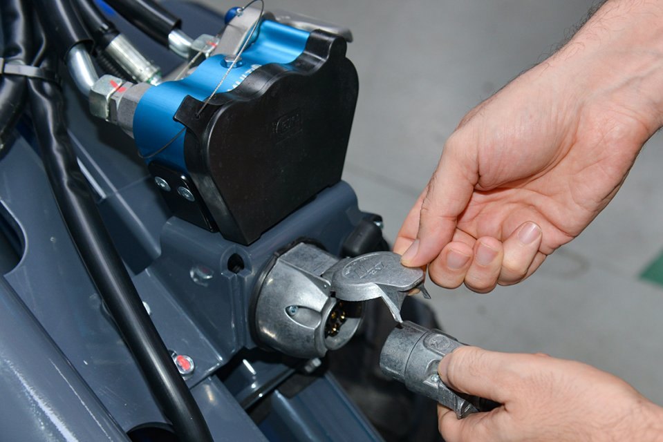 Připojení k přídavným zařízením je provedeno 7pólovou kovovou zástrčkou, která činí systém spolehlivým, jednoduchým a snadno opravitelným, pokud to bude potřeba. Toto je důležitá prodejní argument, všechna příslušenství s více ovládacími prvky se nyní stala Plug & Play, bez ohledu na to, zda je nakladač vybaven kabinou nebo klimatizací. Poskytnuté fotografie a video použijte jako prodejní argument. Nová videa, sociální média a obrázky jsou vítány.