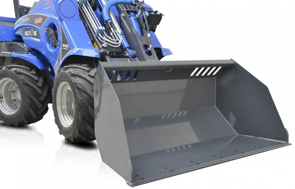 Nový design lopaty MultiOne zvyšuje objem a umožňuje dobrou viditelnost. Vnitřek lopaty je zcela hladký a boky se otevírají v mírném úhlu dopředu, což zaručuje snadné a úplné plnění a vyprazdňování všech druhů materiálů. Na horním konci lopaty jsou úzké otvory, které zlepšují viditelnost a zabraňují padání kamenů směrem k obsluze. Speciální konstrukce umožňuje stohovat kbelíky jedna do druhé, což šetří skladovací prostor (až 6 na paletě). K dispozici s břitem a zuby.
