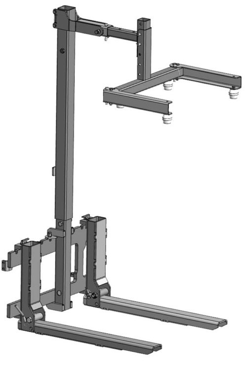 Obě spodní vidlice jsou nastavitelné na šířku a lze je zvednout pro usnadnění přepravy