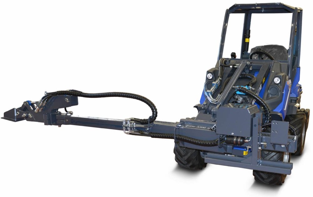 Teleskopické boční rameno je vybaveno přímým teleskopickým ramenem a sklopným ramenem výložníku. Teleskopické rameno se vysune o 1,05 m hydraulicky do strany a pohyb ramena výložníku je 45° dolů a 90° nahoru od vodorovné polohy.