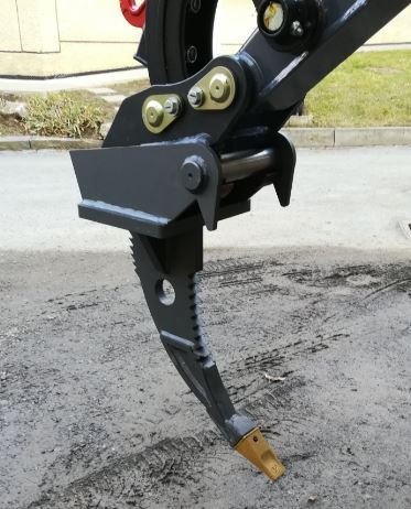 Výhodou rozrývacího háku je koncentrování síly rypadla do jednoho bodu. Ten pak dokáže proniknout do povrchů, které by bylo velmi obtížné prorazit standardní lopatou.