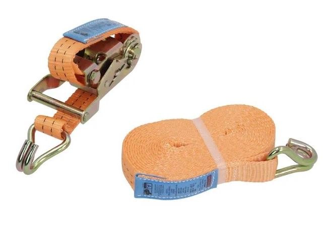Upínací popruh s ráčnou a dlouhou pákou pro vysokou napínací sílu, včetně úzkého špičatého háku.