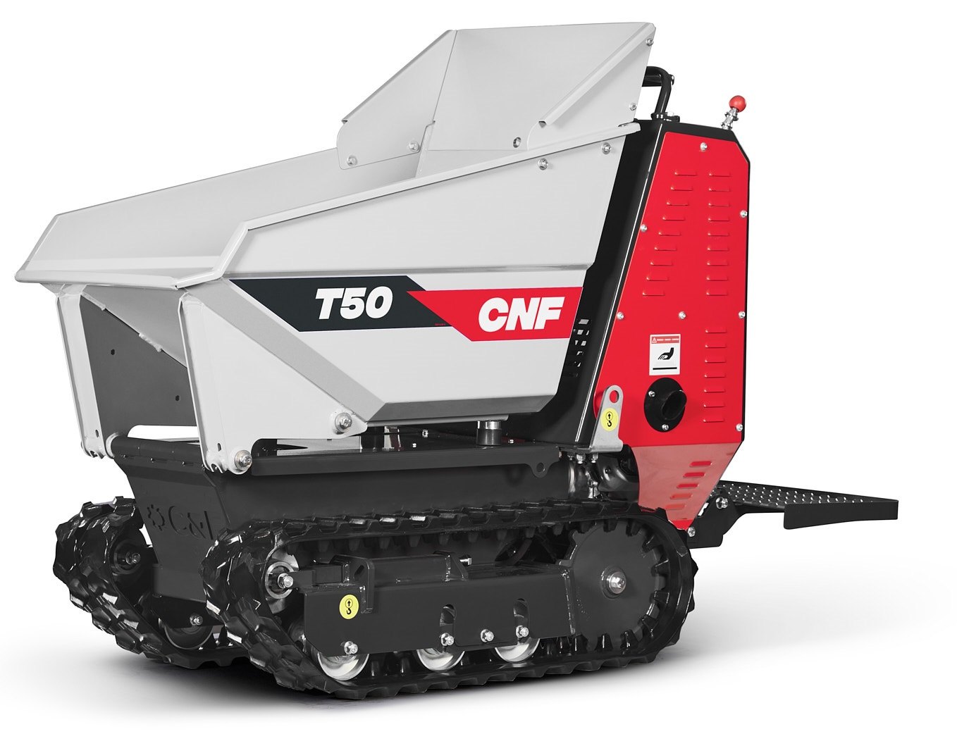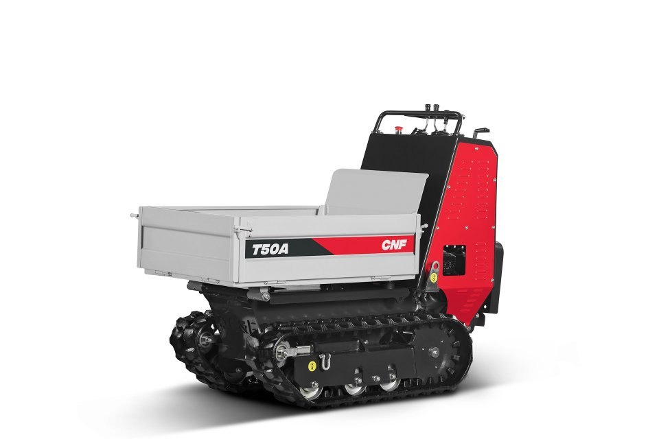Dvojitá rychlost pojezdu a trojité hydraulické čerpadlo odlišují model T50. Se svou kapacitou 500 kg je ideálním mini dumperem pro práci na měkkém nebo nerovném terénu a díky druhé rychlosti je možné urychlit dobu manipulace s materiálem na staveniště. T50 je navržen pro extra těžký provoz a použití.