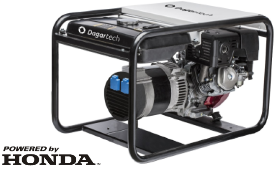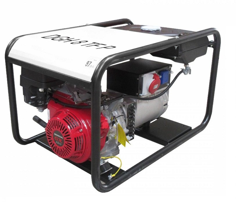 Profesionální benzínová třífázová elektrocentrála s výkonem 7,5 kVA, motor HONDA GX390 s ručním startem, zvětšená nádrž, kryt motoru.