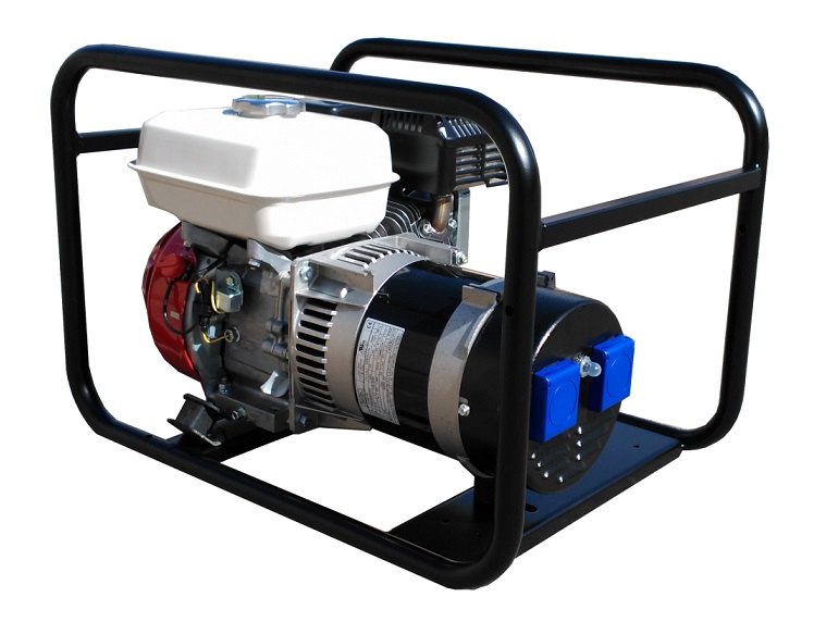 Profesionální benzínová jednofázová elektrocentrála s výkonem 2,4 kVA, motor HONDA GX160 s ručním startem.