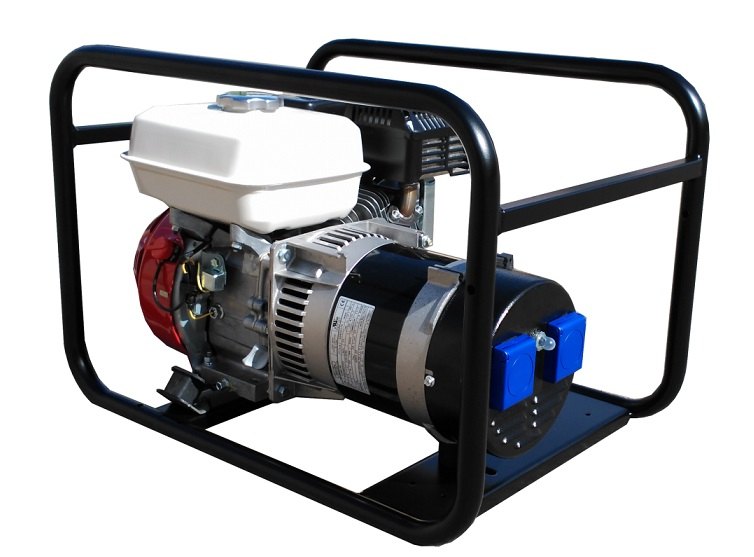Profesionální benzínová jednofázová elektrocentrála s výkonem 4,1 kVA, motor HONDA GX270 s ručním startem.
