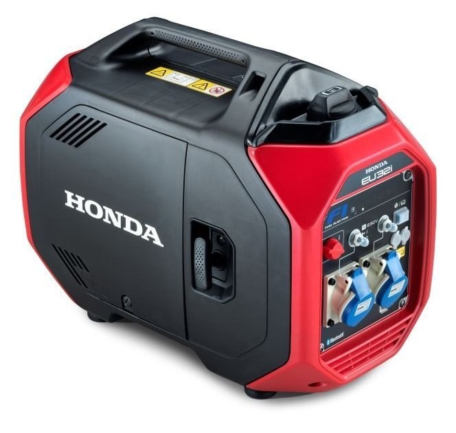 Ovládání a provoz elektrocentrály je velice snadné a jednoduché. Pro nastartování stačí pouhé 2 kroky; na ovládacím panelu vypínač elektrocentrály uvést do polohy zapnuto a zatáhnout za startovací rukojeť. Nic víc. Žádný sytič, palivový kohout a pod. Kromě vypínače na ovládacím panelu elektrocentrály naleznete 2 zásuvky Schuko (16A 230V) s tepelnými jističi, zásuvky pro připojení propojivacího kabelu, kontrolku stavu paliva, kontrolku chodu (zelená) a mazání (červená), kontrolku přetížení (červená), kontrolku Bluetooth a přepínač režimu automatu ovládání motoru ECO-THROTTLE. Stačí natankovat, elektrocentrálu postavit na vodorovnou plochu, nastartovat zatažením za rukojeť ručního startéru, počkat pár vteřin na ustálení chodu motoru a do příslušné zásuvky připojit napájený spotřebič. Spojení pomocí Bluetooth s chytrým telefonem umožňuje vzdálené sledování stavu elektrocentrály pomocí aplikace, stejně jako vypnutí motoru. Na mobilním telefonu tak uživatel může sledovat např. zbývající množství paliva, zbývající provozní dobu, poskytovaný výkon, informace o chybách a údržbě a pod. Zcela nový motor GX130 vychází ze zkušeností konstrukce motorů používaných v malých motocyklech Honda. Jedná se o představitele nejmodernějších benzínových motorů, splňujících přísná emisní a hluková opatření. Konstrukce motoru je svým pojetím ojedinělá v oblasti strojů a tvoří naprostou špičku. Jednoválcový motor Honda GX130 s rozvodem OHC je opatřen vstřikováním paliva a použitím zcela nových materiálů je nejlehčím a nejúspornějším ve své kategorii. EU32i bez problémů snáší i benzíny s vyšším podílem ethanolu pod označením E10.