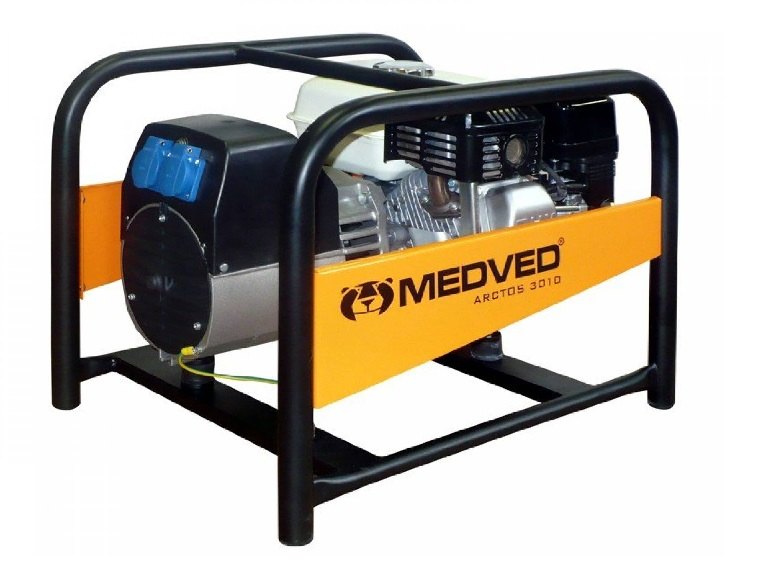 Profesionální benzínová jednofázová elektrocentrála s výkonem 3,5 kVA, regulace AVR, motor HONDA s ručním startem.
