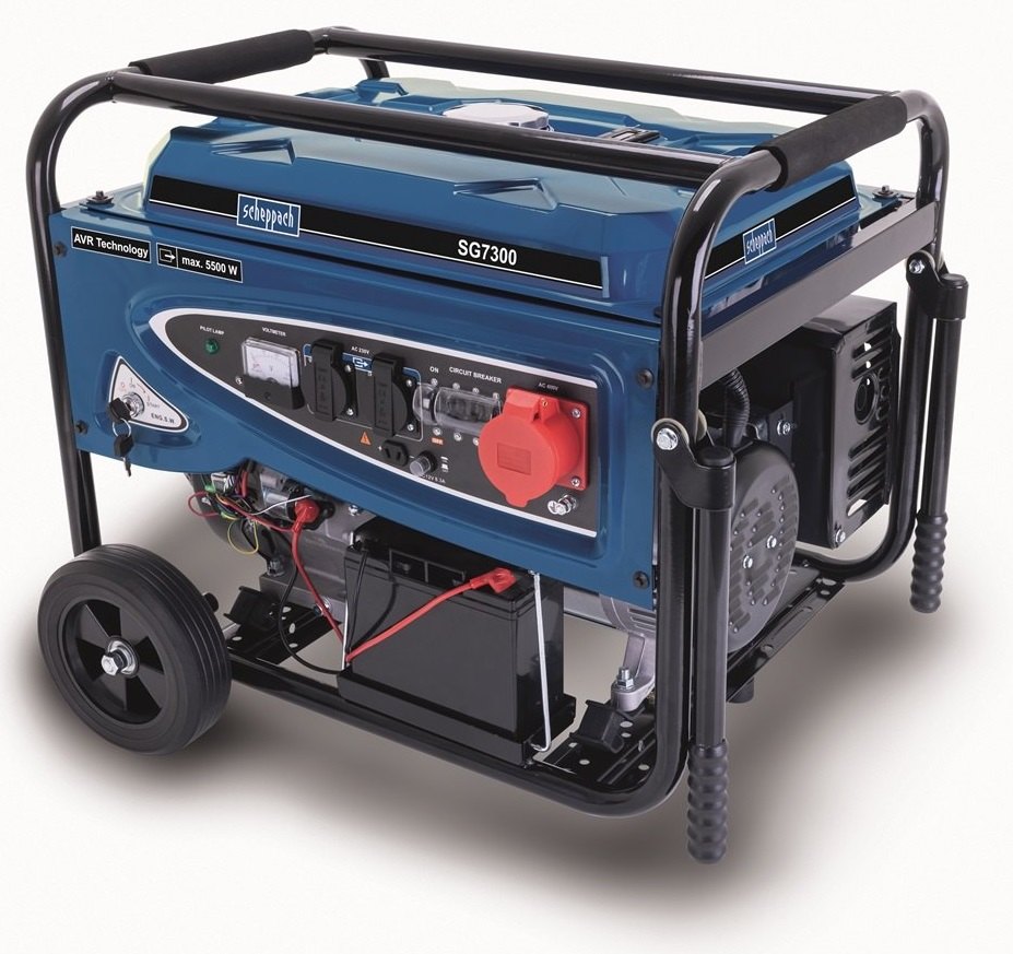 Existuje mnoho důvodů, proč se rozhodnout pro nákup elektrocentrály. Stále existuje mnoho oblastí, kde proud není k dispozici, jindy hrozí při výpadku energie velké hmotné ztráty, lidé potřebují elektřinu u svých zahradních domků, chatek, karavanů, lodí, nezbytný je přísun energie na stavbách. Elektrocentrála Scheppach SG 7300 je top modelem s velmi širokým záběrem použití. Trvalý výkon skvělých 3500 W pro výstup 230 V a 5000 W pro výstup 400 V již dává uživateli možnost napájet většinu běžně používaných spotřebičů nebo strojů s elektromotorem.
