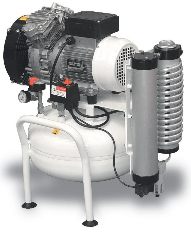 Kompresor z řady Clean Air v bezolejovém provedení s přímým spojením elektromotoru s kompresorovou jednotkou CLR 15 se sacím výkonem 240 l/min je určený pro zubařské ordinace s 1 až 2 křesly a pro všechny menší aplikace s potřebou zcela bezolejového vzduchu. Kompresor disponuje následujícími benefity a standardním vybavením: