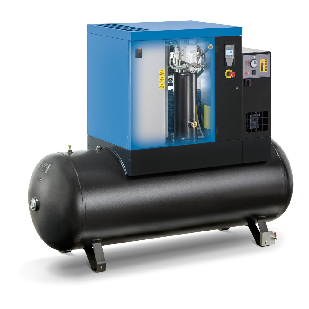 Komfortní malý šroubový kompresor s převodem pomocí klínových řemenů. Model s příkonem motoru 11 kW v praktickém provedení s tlakovou nádobou a kondenzační sušičkou pro úsporu instalačního prostoru. Stroj s vysoko výkonnostním šroubovým blokem C55 nebízí výkon 1 416 l/min a následující standardní vybavení: