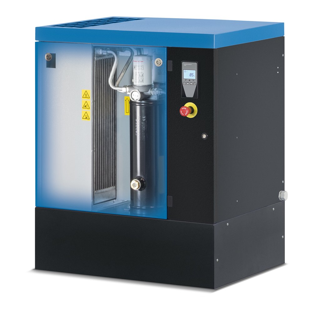 Samostatný malý šroubový kompresor s převodem pomocí klínových řemenů. Model s příkonem 7,5 kW a vysoko výkonnostním šroubovým blokem C55* nabízí výkon 996 l/min a následující standardní vybavení: