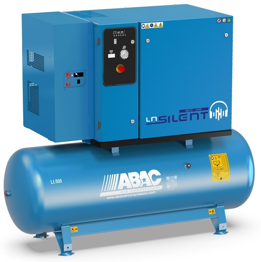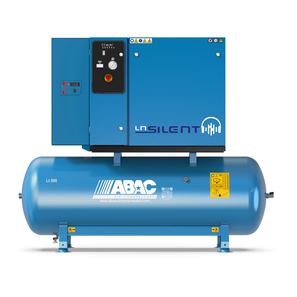 Dvoustupňový kompresor z řady Silent LN v olejem mazaném provedení se spojením elektromotoru s nízkootáčkovou kompresorovou jednotkou pomocí klínových řemenů. Perfektní odhlučnění pomocí kovového krytu s pěnovými panely a se zajištěním optimální provozní teploty stroje pomocí ventilátoru a vhodného vedení chladicího vzduchu. Stroj je vybaven ležatým vzdušníkem a kondenzační sušičkou pro odstranění vlhkosti ze stlačeného vzduchu. Kompresor dále disponuje následujícími benefity a standardním vybavením: