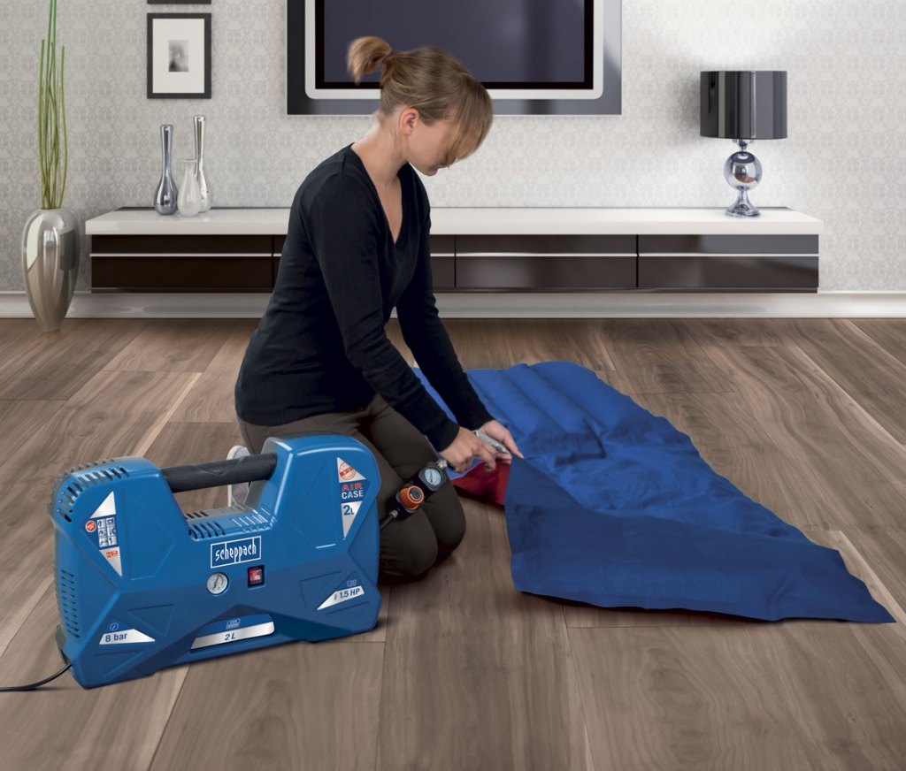 Malý, skladný, tichý, lehký, přesto ale výkonný a bohatě vybavený. Takový je tento skvělý kompresor Scheppach AIR CASE. Výborně se hodí do každé domácnosti, chaty, karavanu nebo malé dílny. Nadstandardní výbava zahrnuje vzdušník o objemu 2 l, díky kterému si dofouknete kolo ve sklepě i bez nutnosti přívodu elektřiny, 9 různých koncovek, díky kterým nafouknete vše od míče, přes pneumatiky a lehátka, až třeba po nafukovací bazén, 3 m hadici s integrovaným manometrem a ovladačem nastavení tlaku, praktickou ofukovací pistoli, integrované prostory pro uložení příslušenství i hadice, pohodlné madlo a manometr vzdušníku. Kompresor je vybavený nejmodernějším motorem s bezolejovou technologií, takže nikdy není potřeba kontrolovat hladinu oleje ani se starat o jeho stáří. Kompresor je tak vždy připravený odvést svoji práci. Jeho rozměry a nízká váha pouhých 8 kg ho rovněž předurčují k využití při stanování, kempování a jiných outdorových aktivitách.