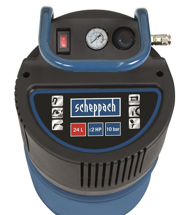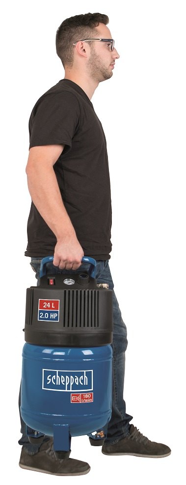 Vertikální kompresor Scheppach HC 24 V je prostorově velmi úsporný stroj, který má díky použití moderního motoru s bezolejovou technologií rovněž minimální nároky na údržbu. To ho staví do role ideálního kompresoru pro běžné domácí využití a do stísněných dílen a garáží. Tlaková nádoba slouží jako zásobárna stlačeného vzduchu a motor se tak zapíná jen v případě, že tlak vzduchu klesne pod požadovanou úroveň. Díky vzdušníku můžete s kompresorem provádět i náročnější operace, než je běžné huštění. Můžete k němu připojit třeba sponkovačku, stříkací pistoli (airbrush), ofukovací pistoli a další vzduchové nářadí. Při dofukování pneumatik zase oceníte jednoduché nastavení výše tlaku, který můžete snadno kontrolovat pomocí vestavěného manometru. Díky bezolejové technologii se dobře hodí i k udržování tlaku v pivních sudech. Přídavná rukojeť, nízká hmotnost a kompaktní rozměry umožní snadnou manipulaci se strojem.