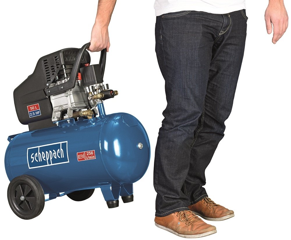 Tento kompresor splňuje jeden zásadní parametr, který ho staví do třídy strojů vhodných i k profesionálnímu použití v mnoha dílnách a tím je pracovní tlak 10 barů. Rozdíl v síle poznáte hlavně při práci s pneumatickým příslušenstvím. Sponkování, nastřelování hřebíků či nýtování se tak stane snadným úkolem. Zesílená pumpa kompresoru je mazána olejem, což prodlužuje životnost celého stroje i při častém používání. Aby byla kontrola oleje jednoduchá, je kompresor vybaven optickým ukazatelem jeho stavu. Vzdušník slouží jako zásobárna stlačeného vzduchu a motor se tak zapíná jen v případě, že tlak vzduchu klesne pod požadovanou úroveň. Celý proces je kontrolován plně automatickým tlakovým spínačem. Díky velkému objemu vzdušníku je kompresor dále vhodný na ofukování, pro připojení mycí pistole, stříkací pistole, pískovací trysky ap. Při dofukování pneumatik ap. zase oceníte jednoduché nastavení výše tlaku, který můžete snadno kontrolovat pomocí přehledného manometru. Přídavná rukojeť a kolečka umožní snadnou manipulaci se strojem.