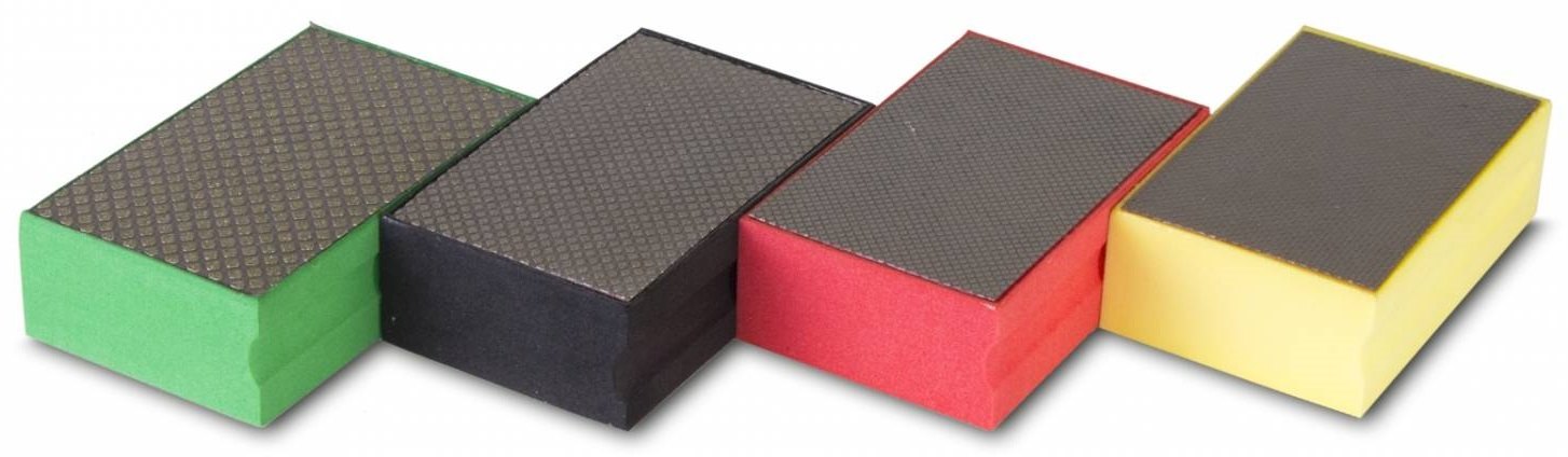 Ruční diamantové leštící houbičky jsou navrženy tak, aby se s nimi dalo pracovat na místech, kde je přístup s elektrickým nářadím velmi komplikovaný, jako jsou vnitřní úhly, duté plochy nebo rohy a pro hrubování a vyhlazování odřezaných nebo ostrých hran.