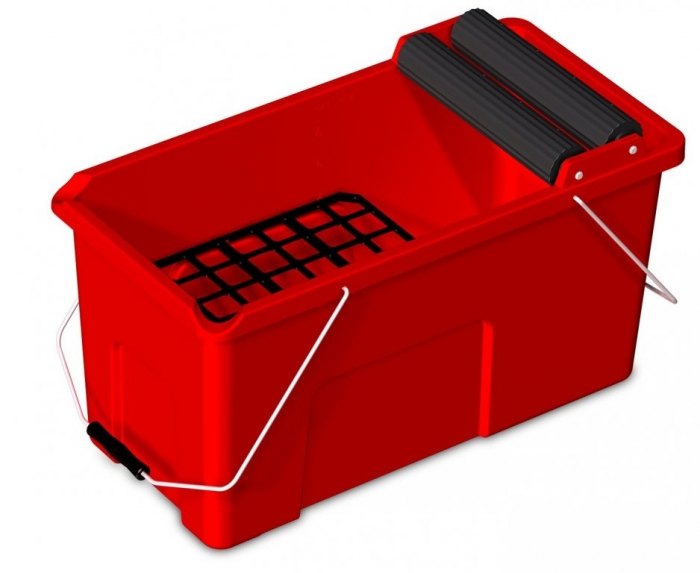 Vanička RUBICLEAN má zabudovaná kolečka pro snažší manipulaci na rovném povrchu, stěrné válečky jsou ve dvou výškách. Nádoba má objem 24litrů, použitelný objem je 17 litrů = výška mřížky.