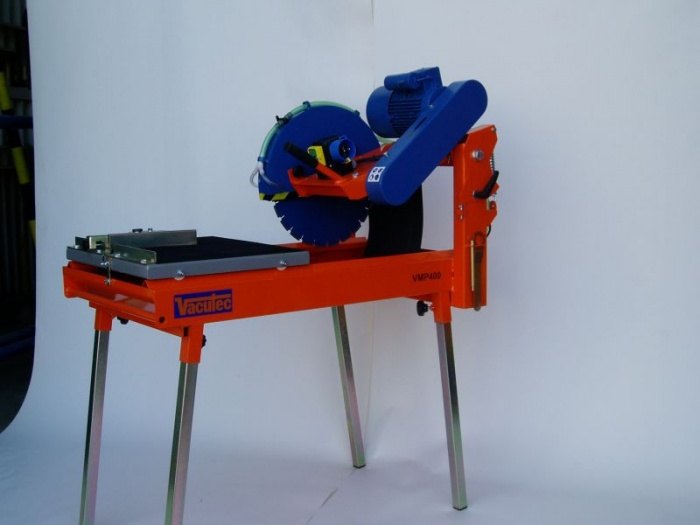 Profesionální bloková pila Vacutec VMP 400 s vodou chlazeným diamantovým kotoučem je vhodná k řezání porobetonu, obkladových materiálů, žuly, mramoru, ale i betonových střešních tašek nebo dlažby. Konstrukce pily je robustní a tuhá, čímž se předchází vzniku vibrací při řezání. Díky své univerzálnosti jsou pily Vacutec ideální nejen pro půjčovny stavební mechanizace.