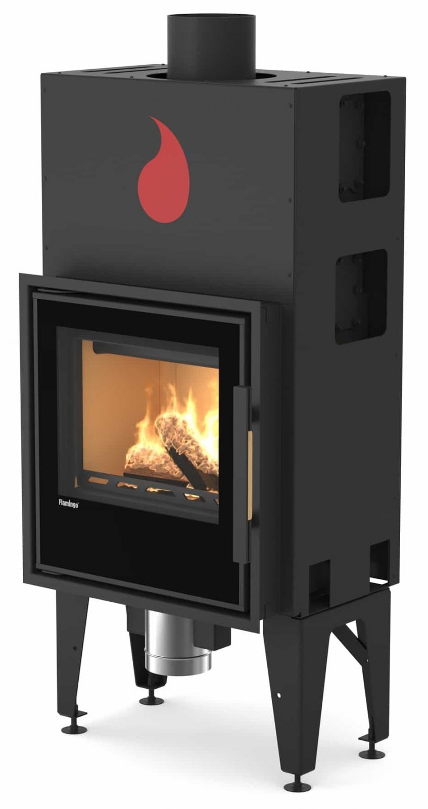 Součástí každé krbové vložky Flamingo je integrovaný stojan. Odpadá vám tedy nutnost stojan dozdívat nebo kupovat jej zvlášť. Stojan je výškově regulovatelný a má vysokou stabilitu.