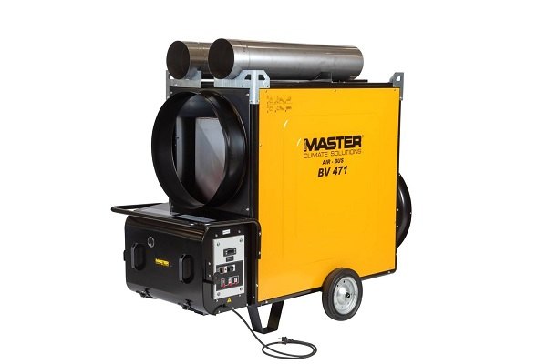 Mobilní naftové topidlo Master BV 471 S s nepřímým spalováním bez zabudované palivové nádrže s výkonem 136 kW a průtokem vzduchu 8.500 m³/h.