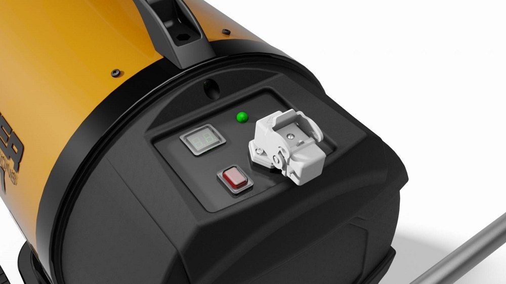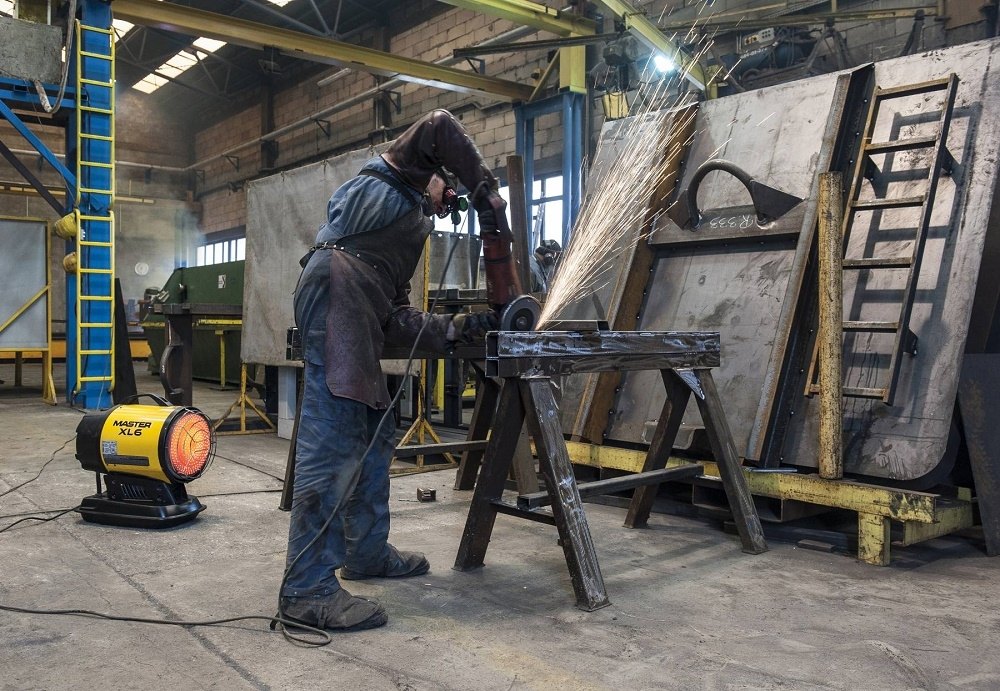 Infračervené topidlo Master XL 61 o výkonu 17kW, s nízkou hlučností a sálavým infračerveným ohřevem bez proudění vzduchu a palivovou nádrží s ukazatelem stavu paliva.