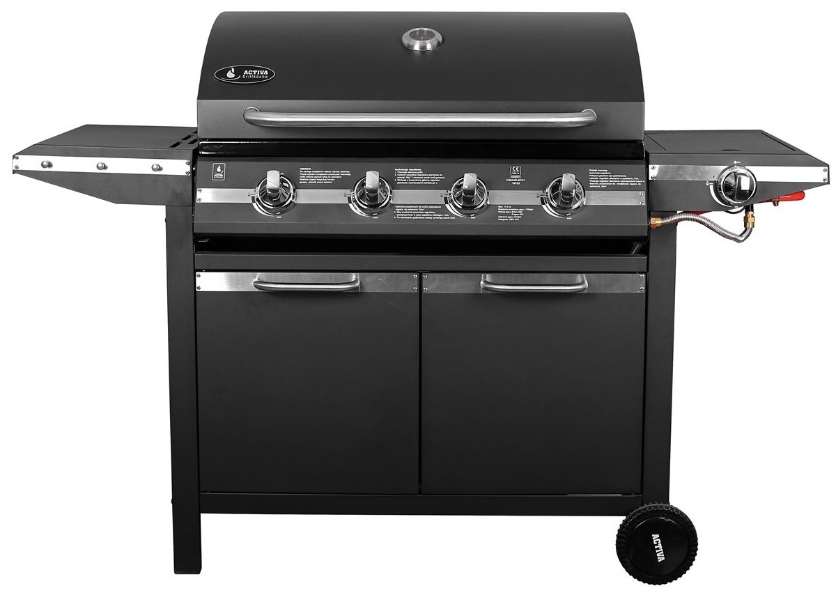 Velký plynový gril Montana III od německé společnosti Activa se skvěle hodí pro chutnou přípravu jídel pro společnost až 14 lidí. Gril Montana je skvěle vybavený. Má čtyři moderní výkonné ploché hořáky s horním krytem, díky kterému je odkapávající tuk veden mimo plamen a odveden do speciální nádržky. Pokrm tak bude vždy zdravý bez zbytečných škodlivých prvků, které vznikají přepalováním tuku. Gril rovněž má praktický integrovaný boční vařič z odolné litiny vhodný na přípravu omáček, horkých nápojů nebo příloh. Hořáky se pohodlně zapalují pomocí piezo zapalování integrovaného v otočných knoflících.