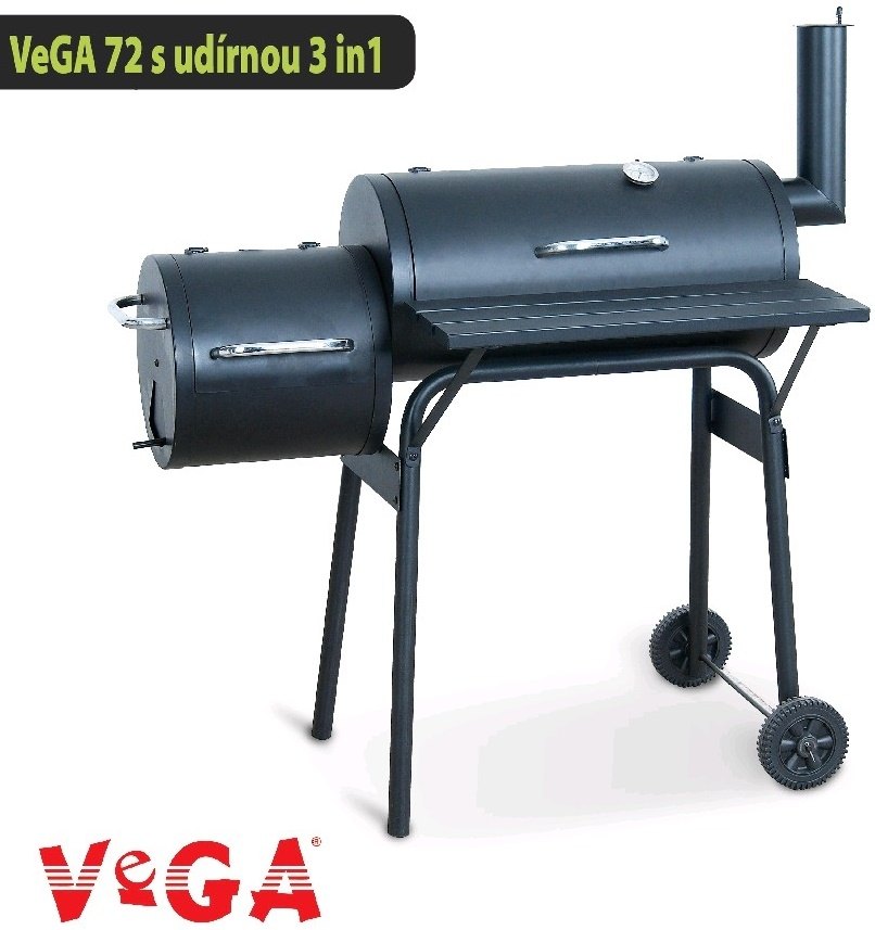 Všestranný komfortní Gril VeGA 72 s udírnou na dřevo , dřevěné uhlí a brikety slouží pro pohodlné grilování, pečení, vaření a uzení.