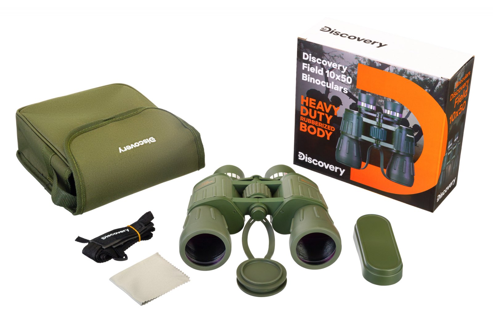 Tělo binokulárního dalekohledu Discovery Field 10x50 s optikou ze skla BK-7 je vyrobeno z odolného plastu a je také pogumováno. Optické a mechanické prvky jsou dobře chráněny před poškozením a vlhkostí. Vnější povrch je strukturovaný, což zabraňuje vyklouznutí binokulárního dalekohledu z mokrých rukou. Binokulární dalekohled se snadno nastavuje – vše, co potřebujete, je upravit zaostření na čočce objektivu pomocí praktického centrálního zaostřovacího tubusu, v případě potřeby nastavit dioptrickou korekci, takže teď máte vše připraveno pro pozorování. Binokulární dalekohled lze připevnit na stativ pro stacionární pozorování (standardní 1/4" patice).