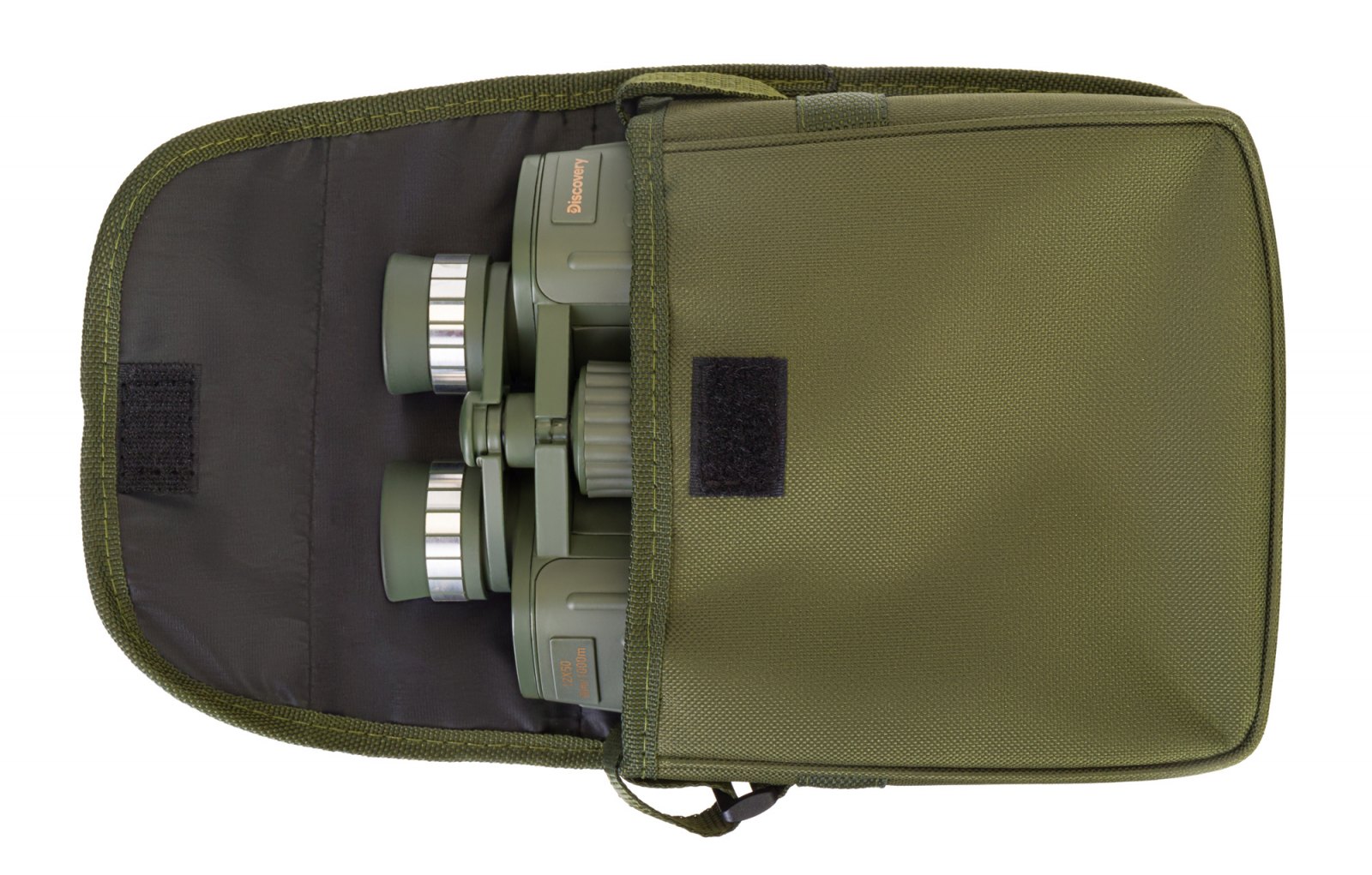 Optika binokulárního dalekohledu Discovery Field 12x50 je vyrobena ze skla BK-7, zatímco tělo je vyrobeno z odolného, ale lehkého plastu. Pogumované tělo zajišťuje ochranu proti mechanickému poškození, vlhkosti a prachu. Díky vnějšímu reliéfnímu povrchu tento binokulární dalekohled velice dobře padne do ruky a neklouže. Čočky objektivu lze nastavit pomocí praktického centrálního zaostřovacího tubusu, který je také pogumovaný. V případě potřeby můžete nastavit dioptrie tak, aby odpovídaly rozdílům ve vašem vidění mezi pravým a levým okem.